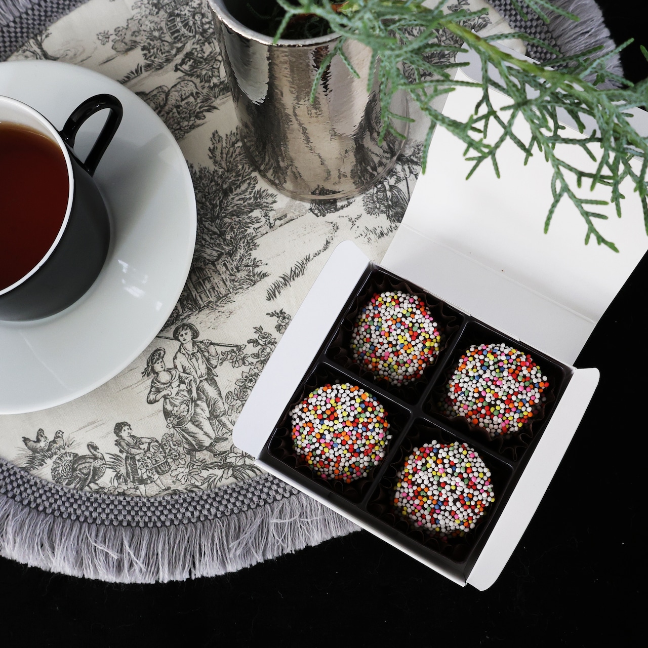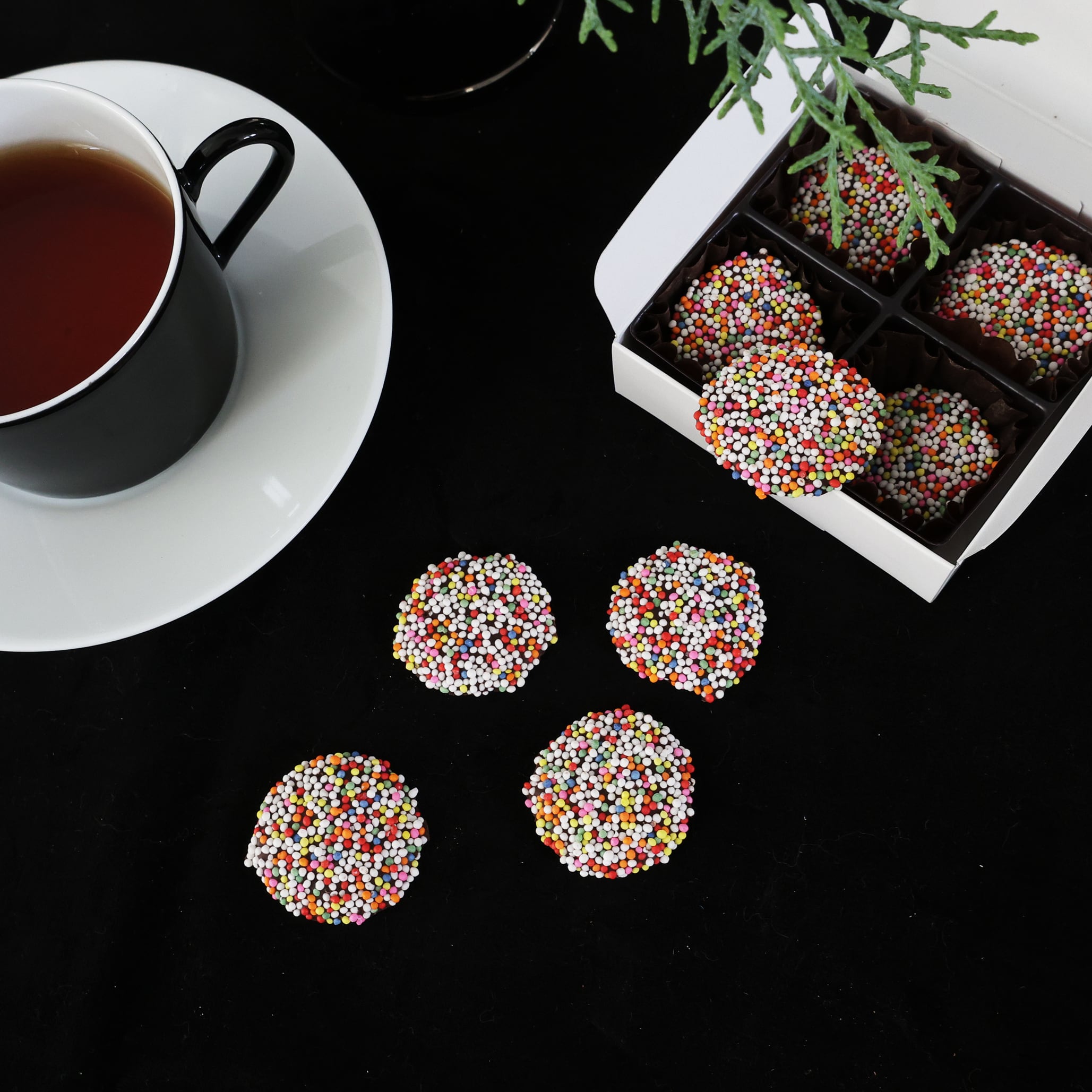 くちどけの良い上質なチョコレートに、カラフルな砂糖菓子ノンパレールをトッピング。見た目もかわいく、毎年人気の商品です。